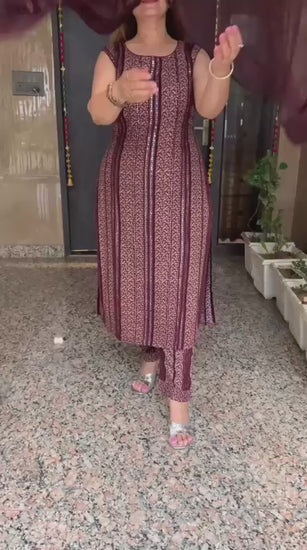 Beautiful Printed Rayon 3 Piece Kurti with Mirror, Embroidery work along with Pant and 2 Side Border Chiffon Dupatta