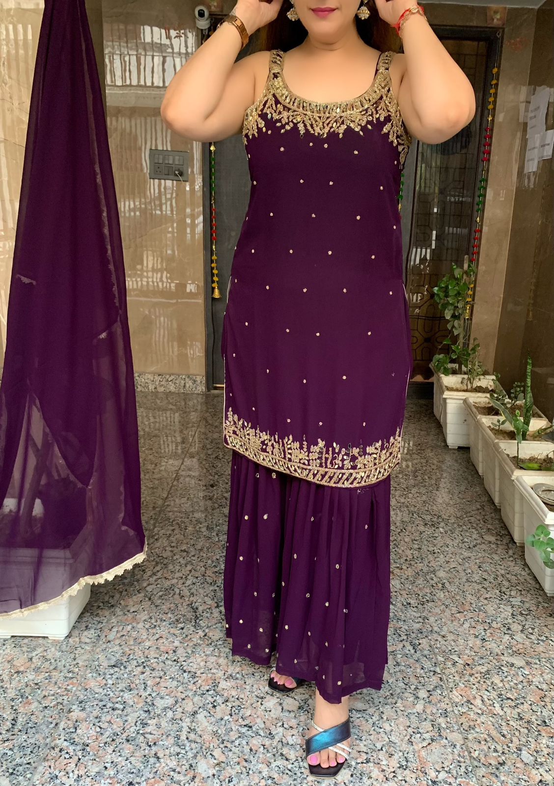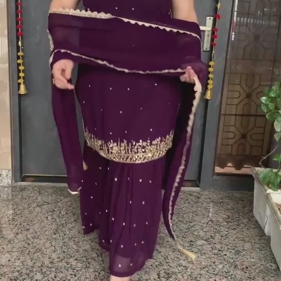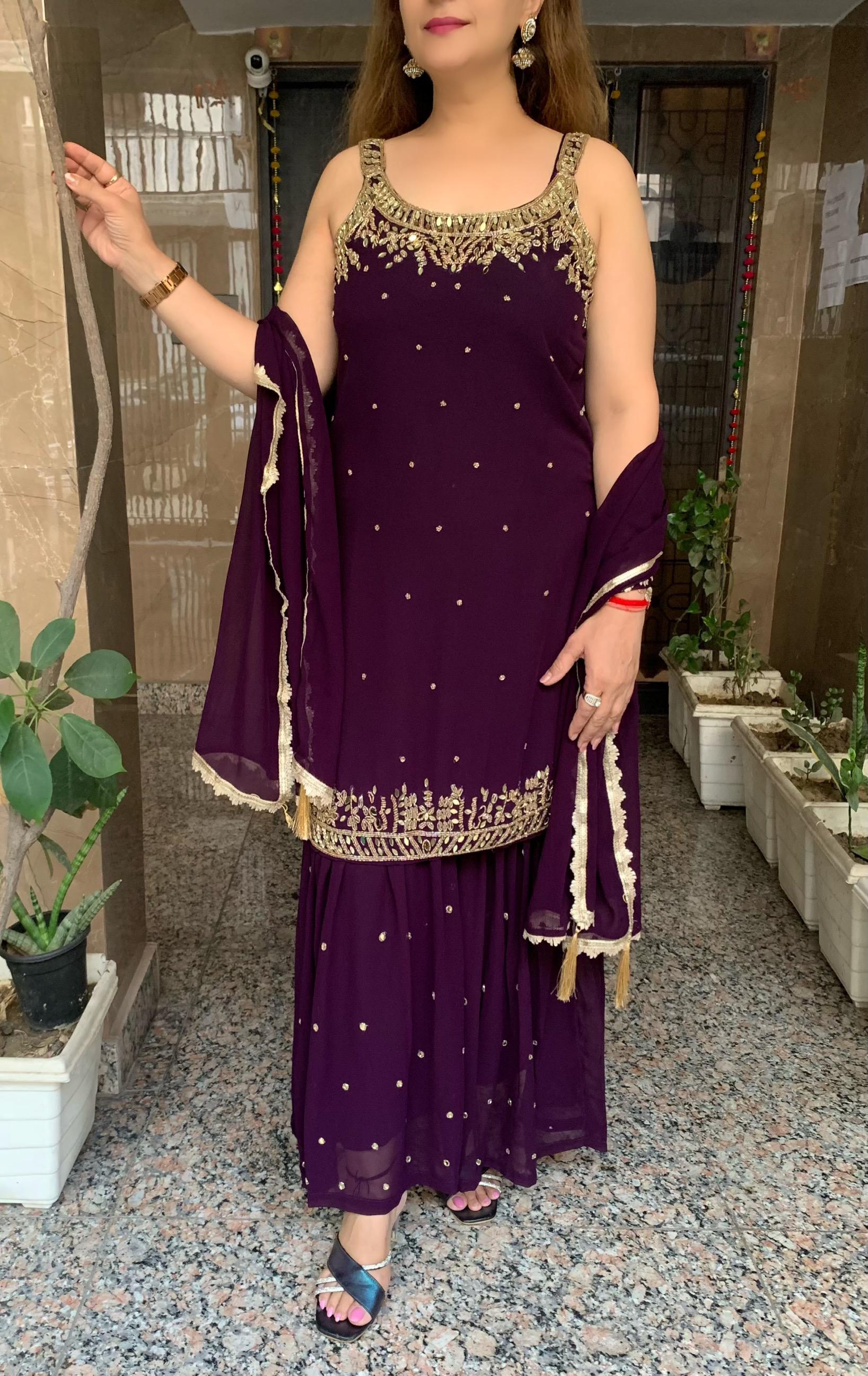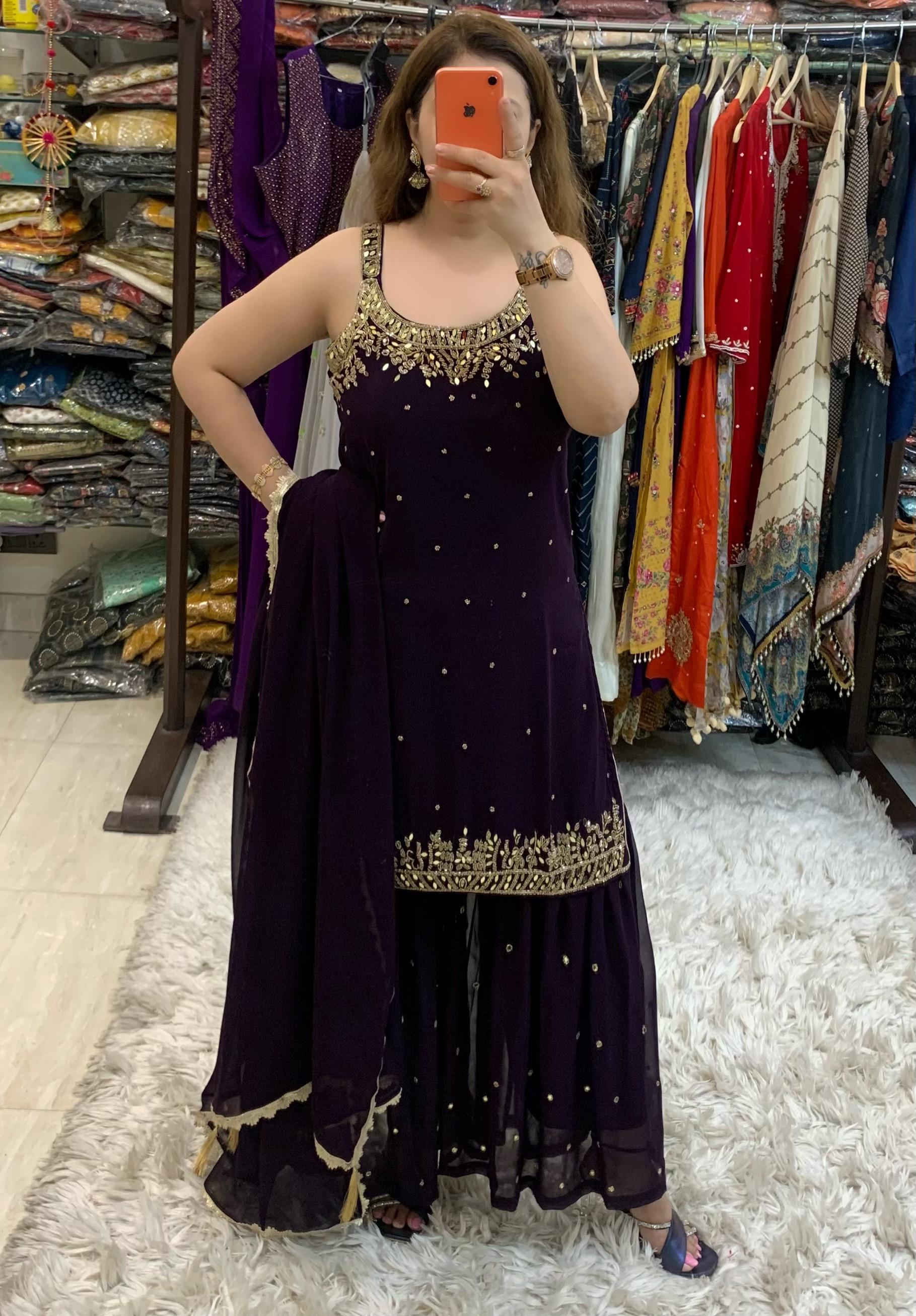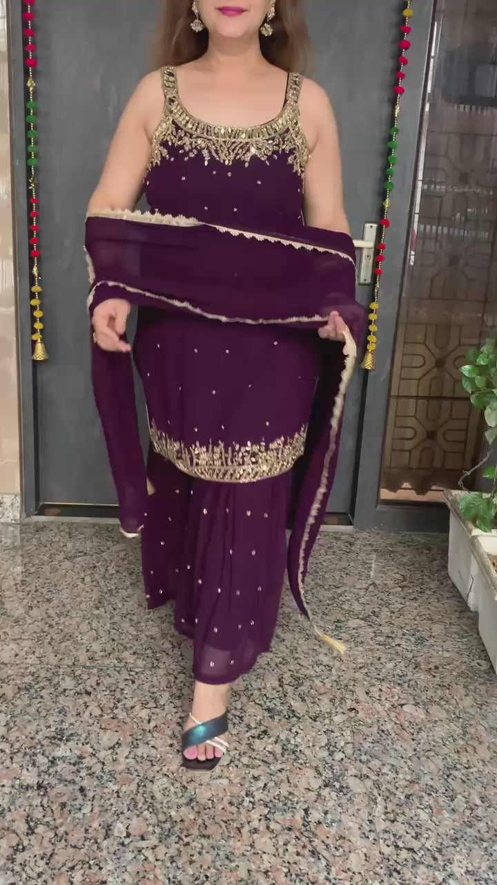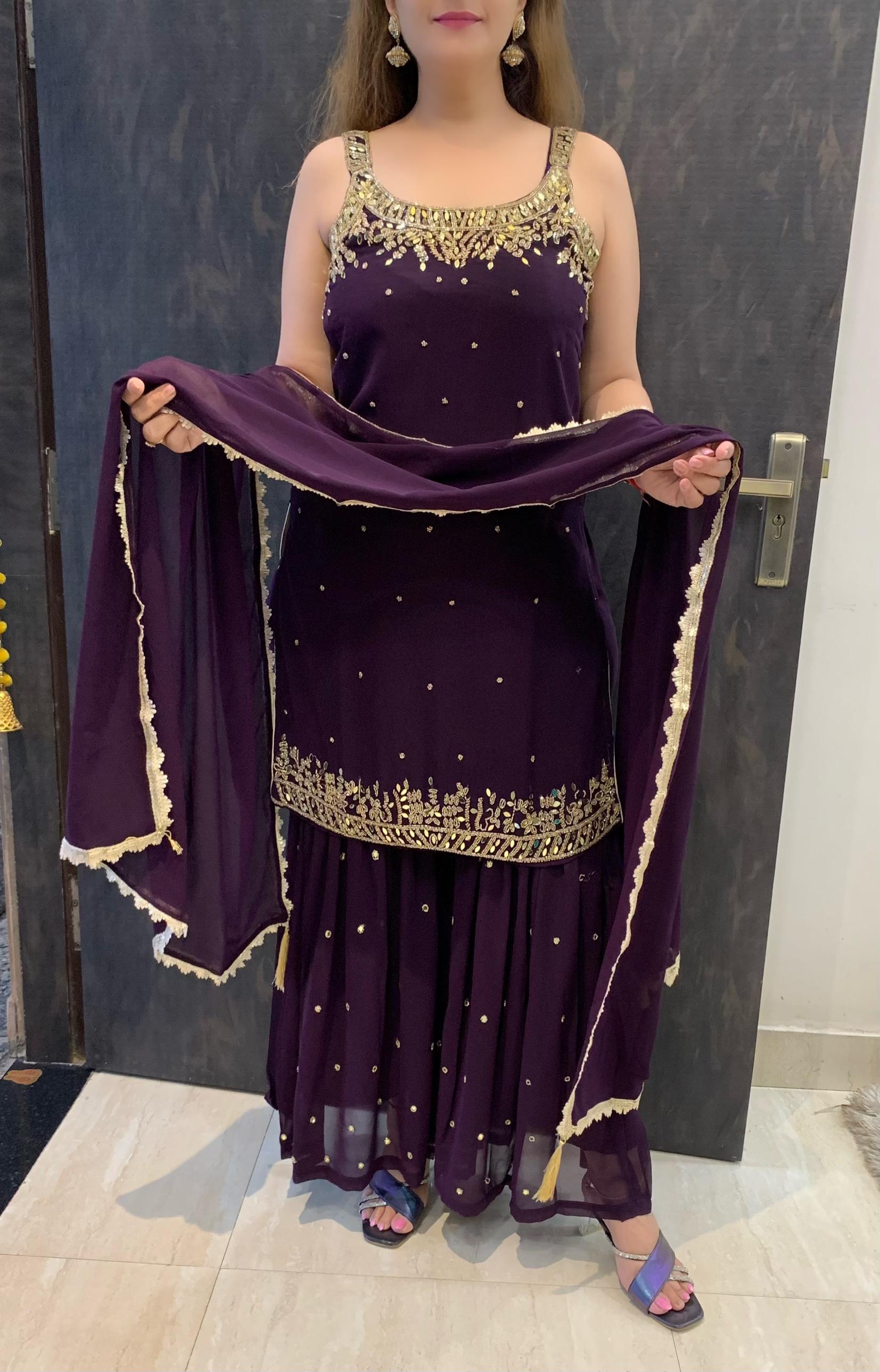 Beautiful Georgette 3 Piece Full Lining Short Kurti with Fine Nalki, Real Mirror and Bead Work along with Garara and Dupatta
