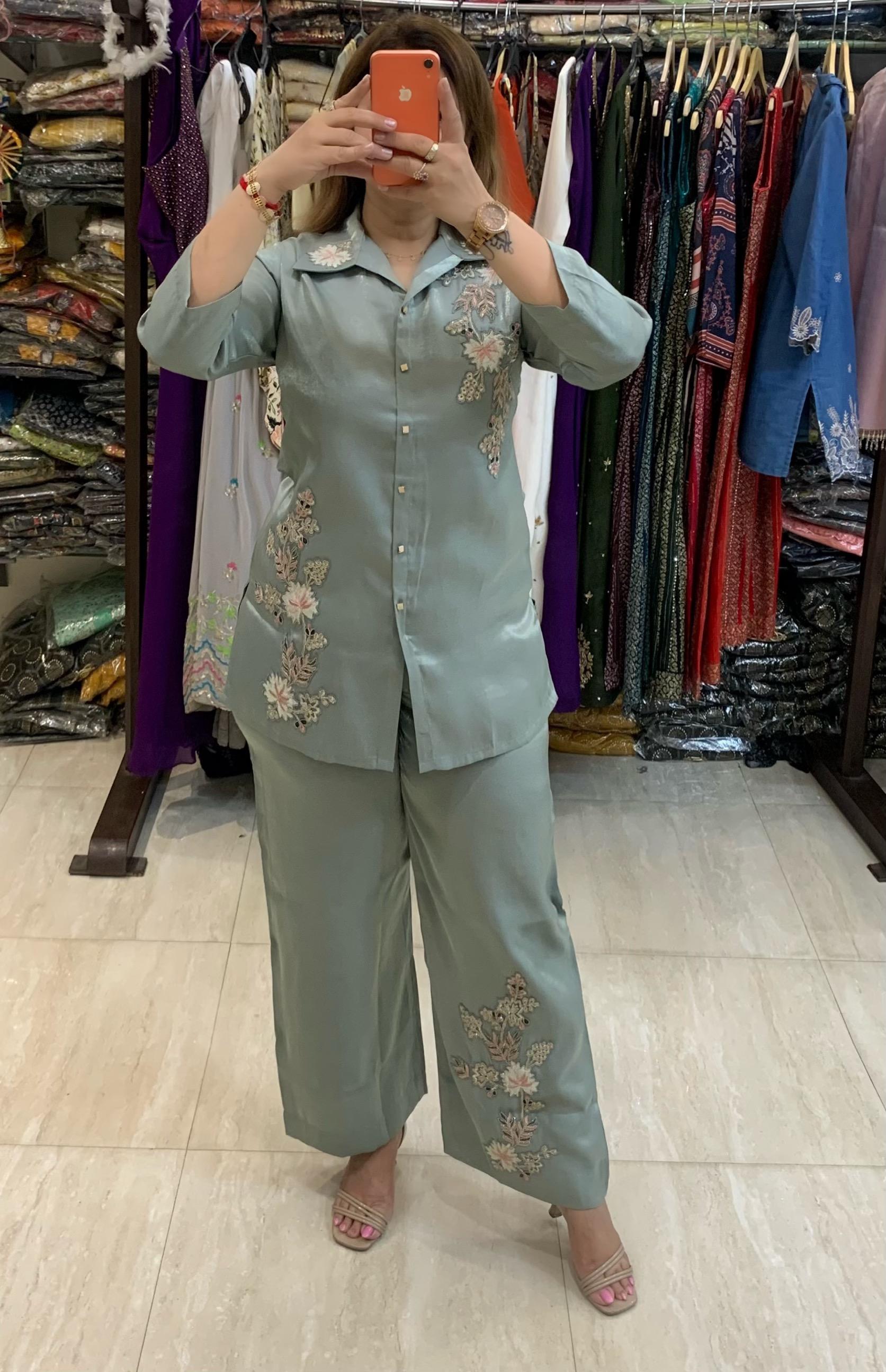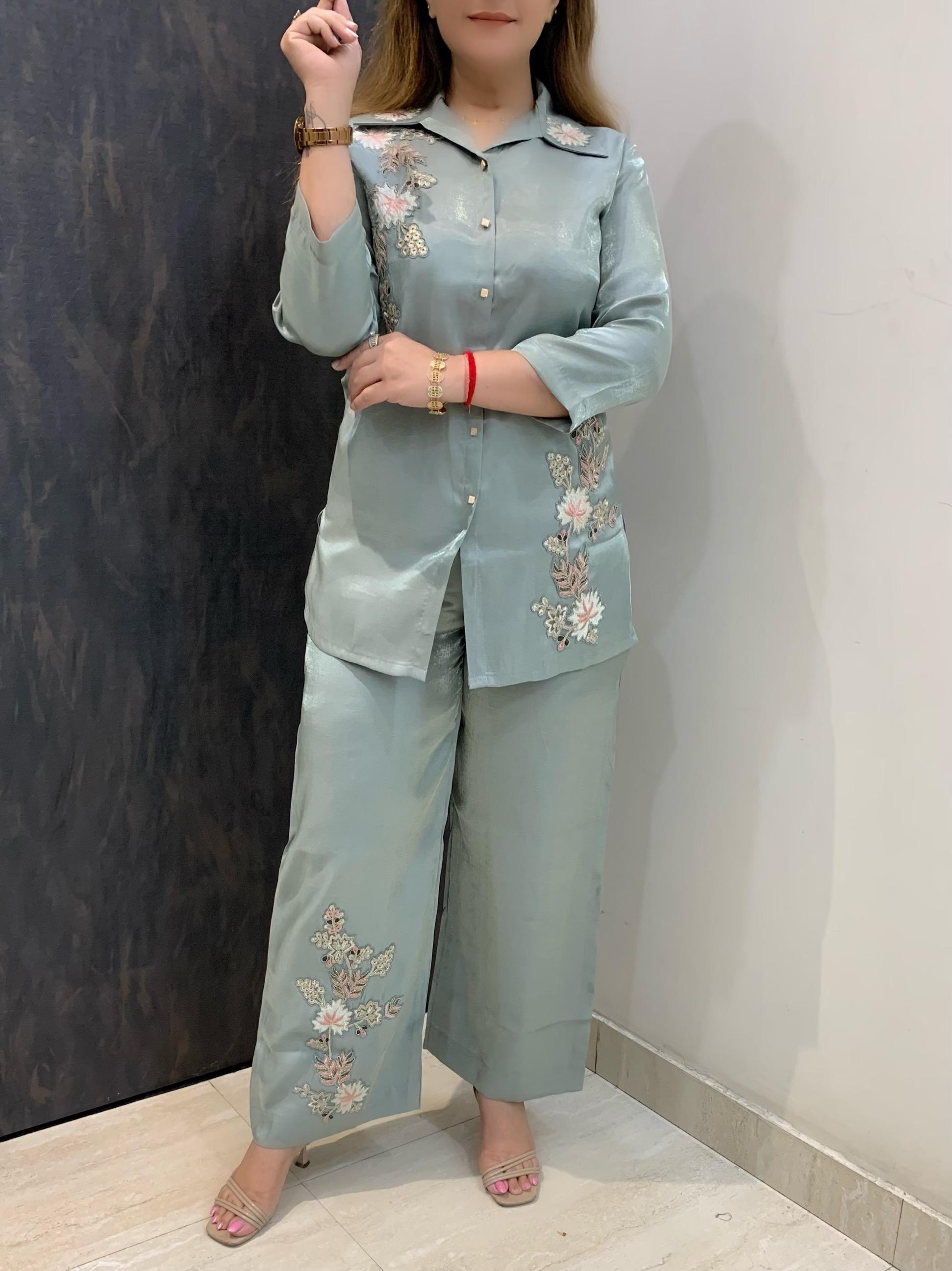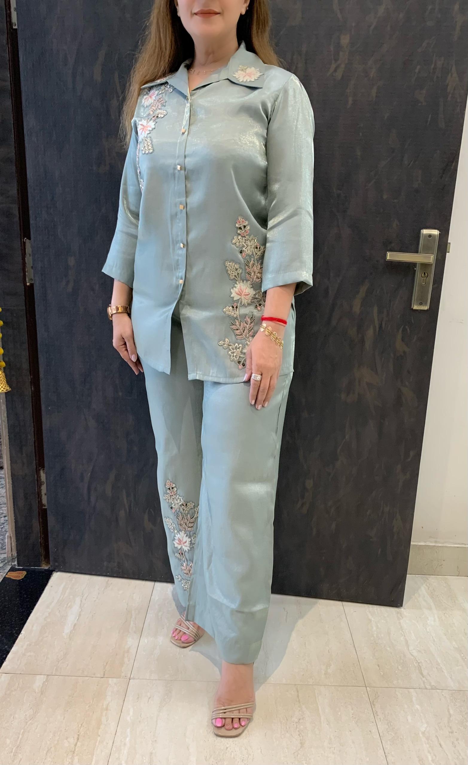 Classy Imported Shimmer Tissue 2 piece Co-ord Set with Zari Patch Work