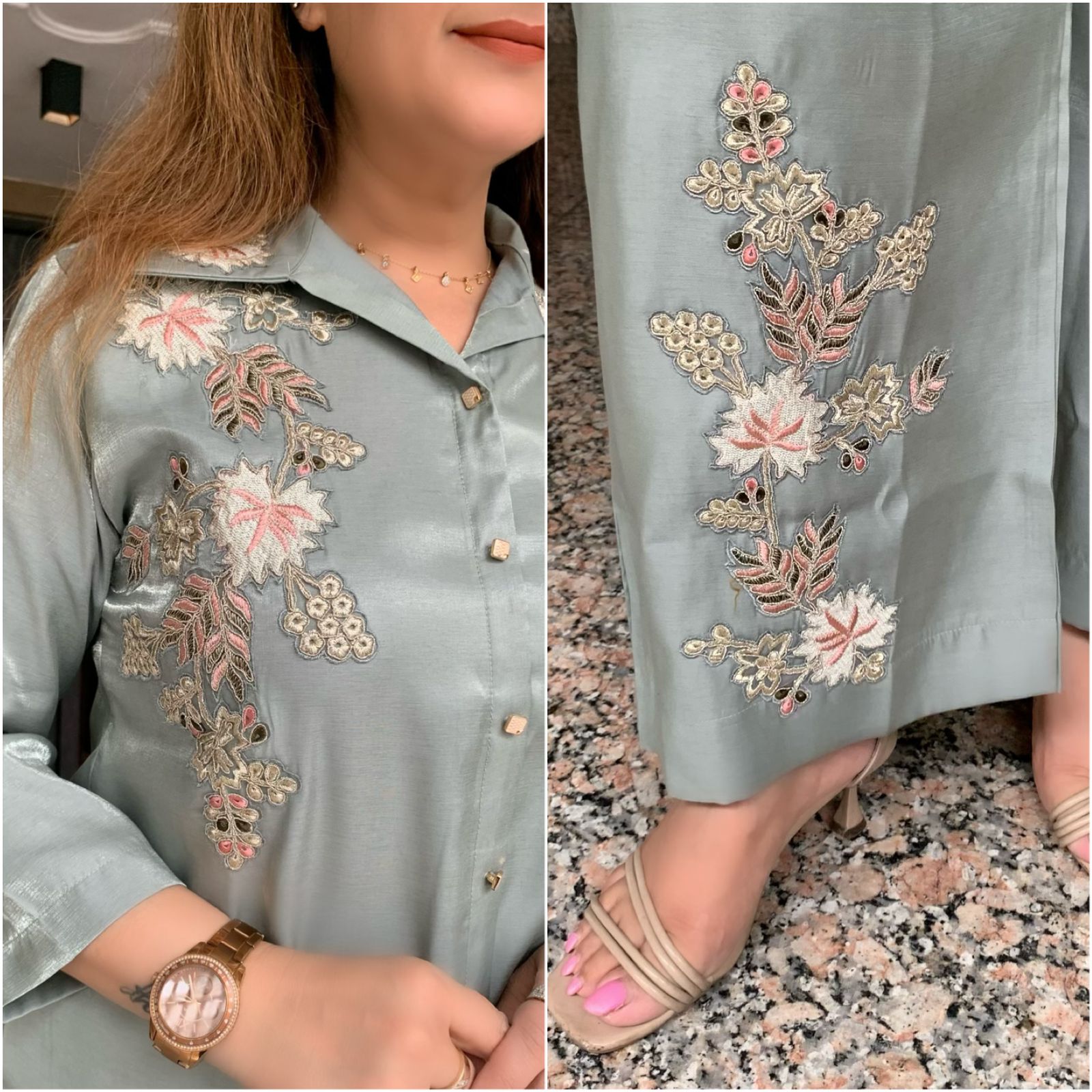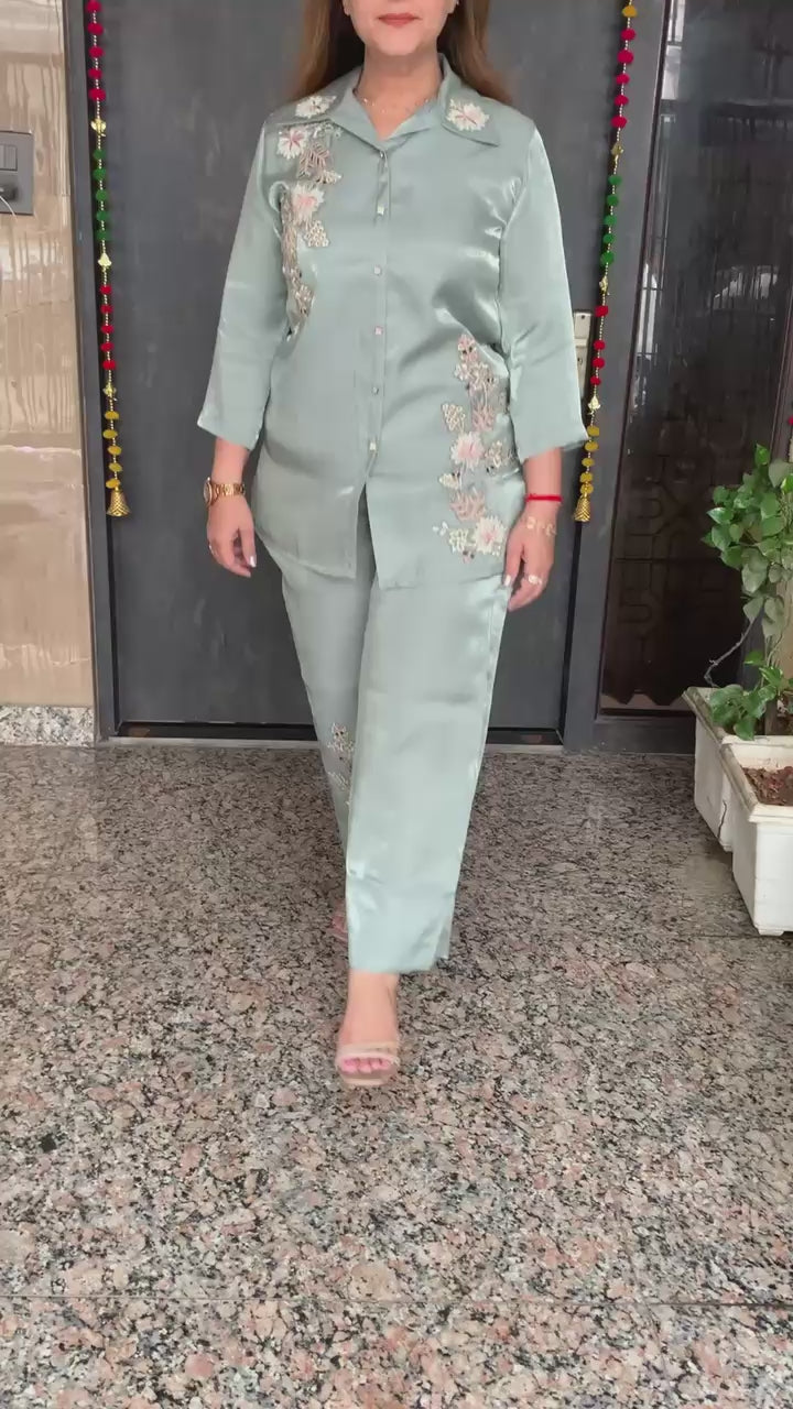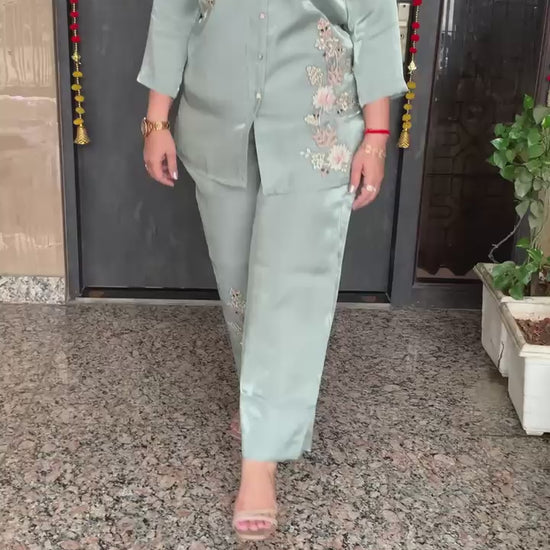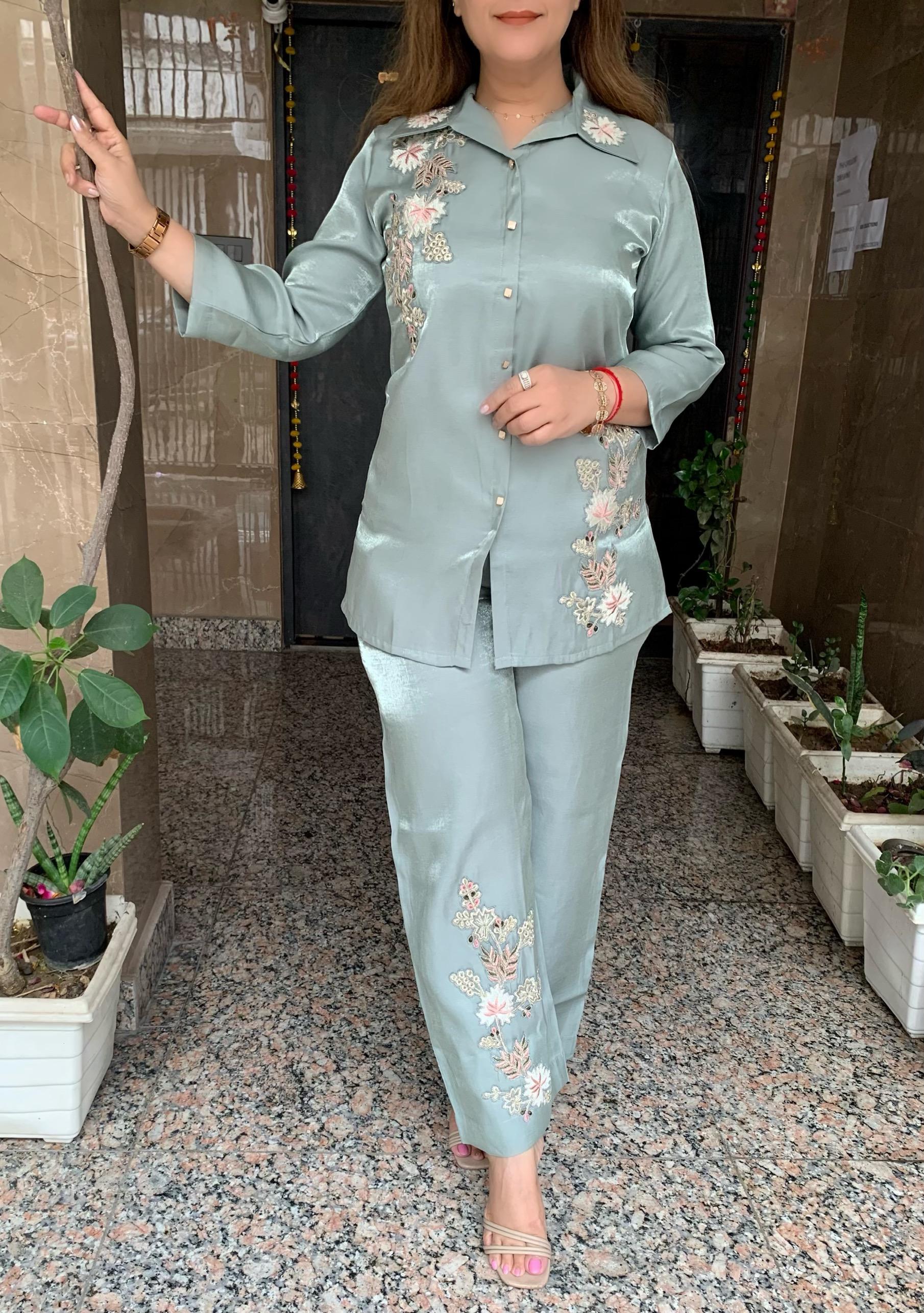 Classy Imported Shimmer Tissue 2 piece Co-ord Set with Zari Patch Work