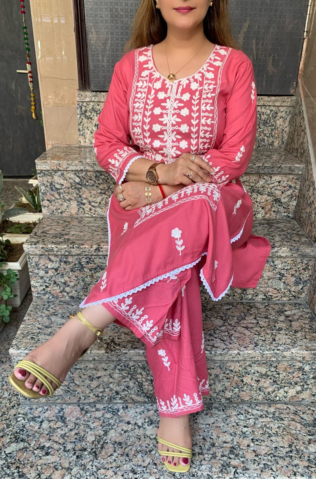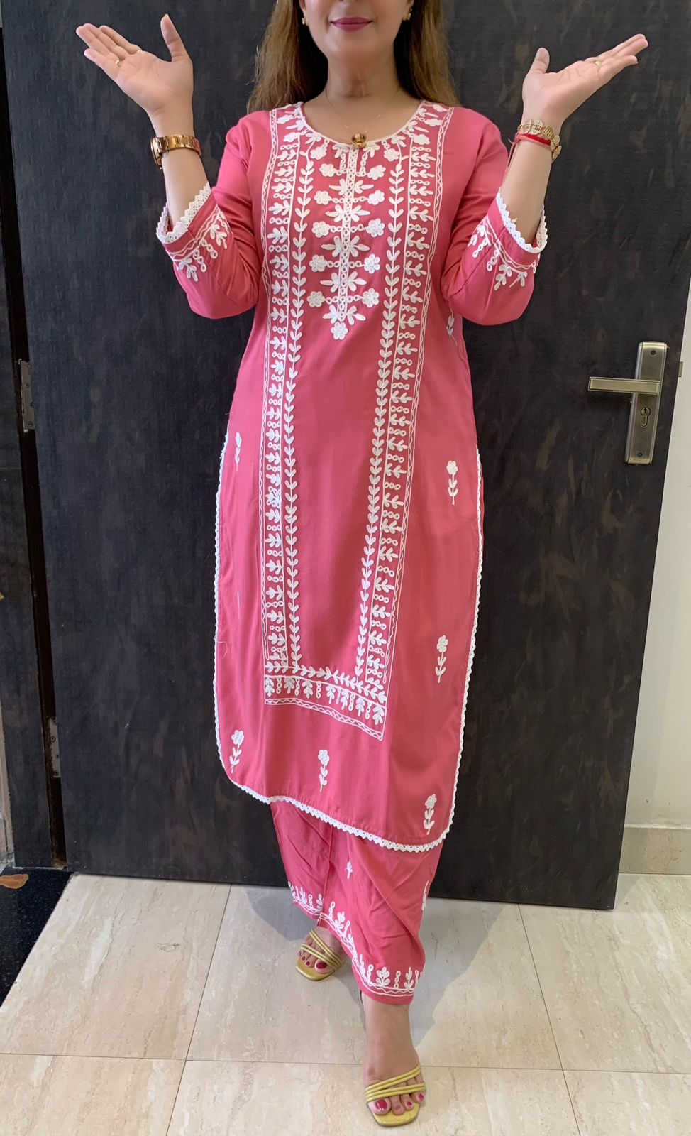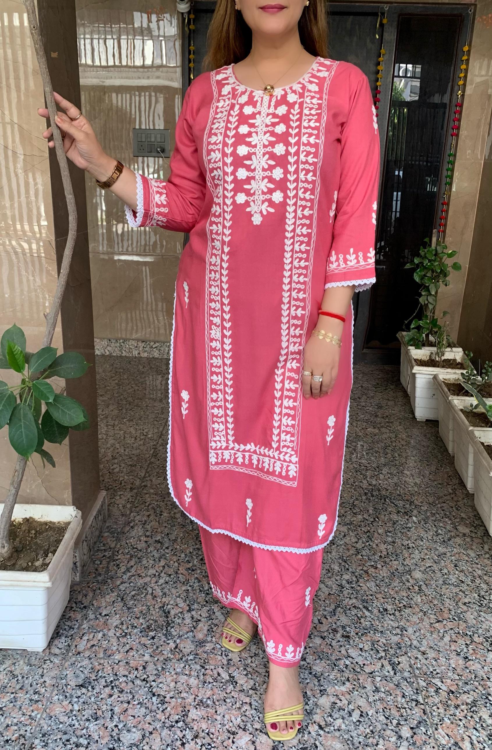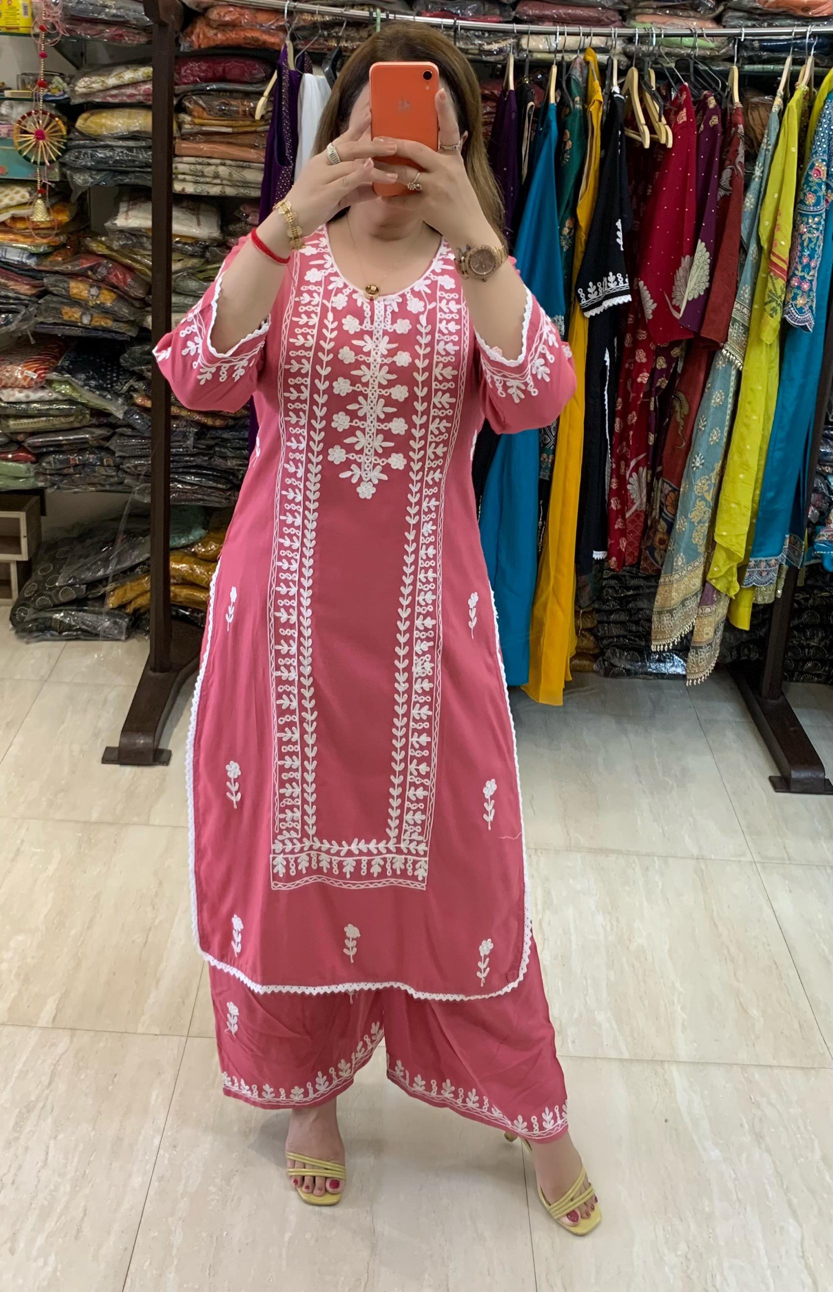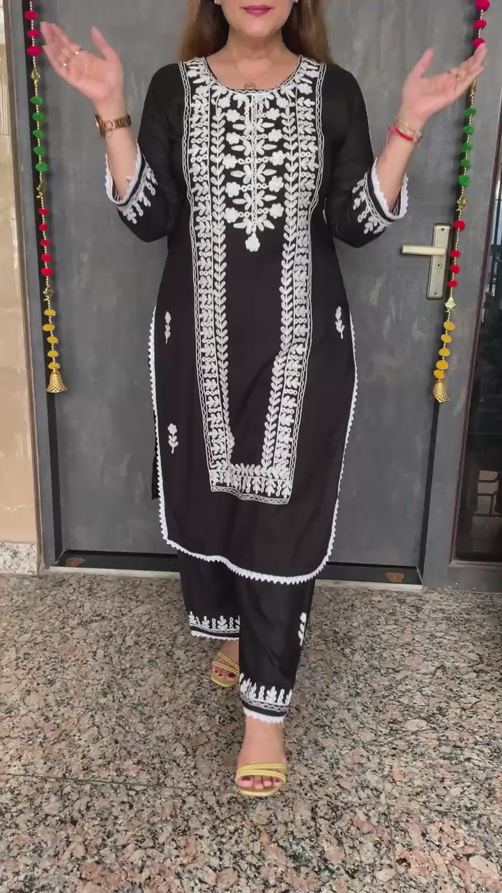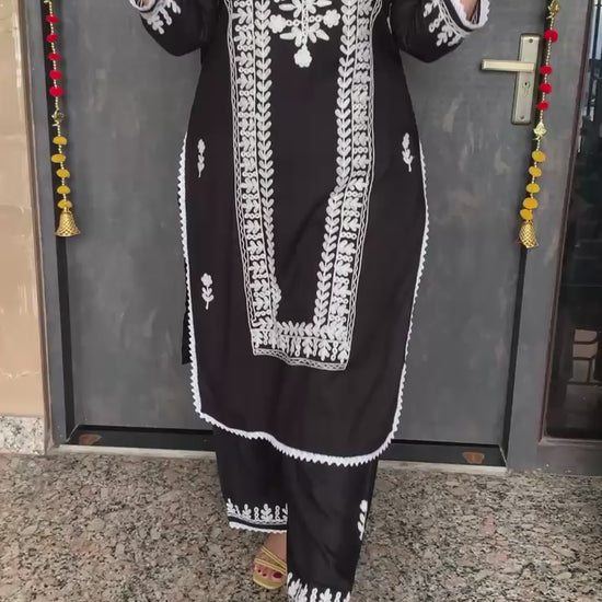 Elegant 2 Piece Rayon Chikenkaari Embroidery Kurti with Plazzo