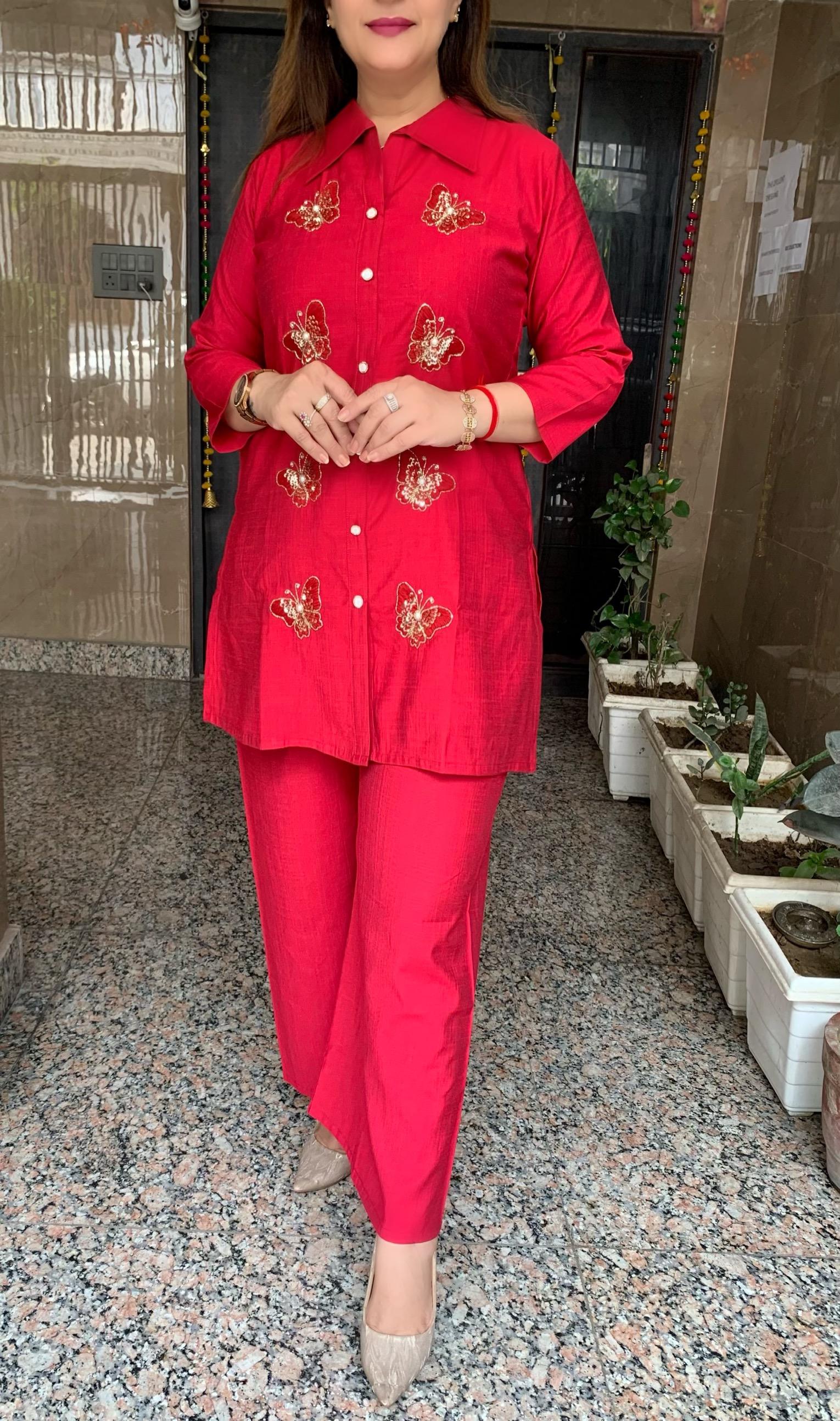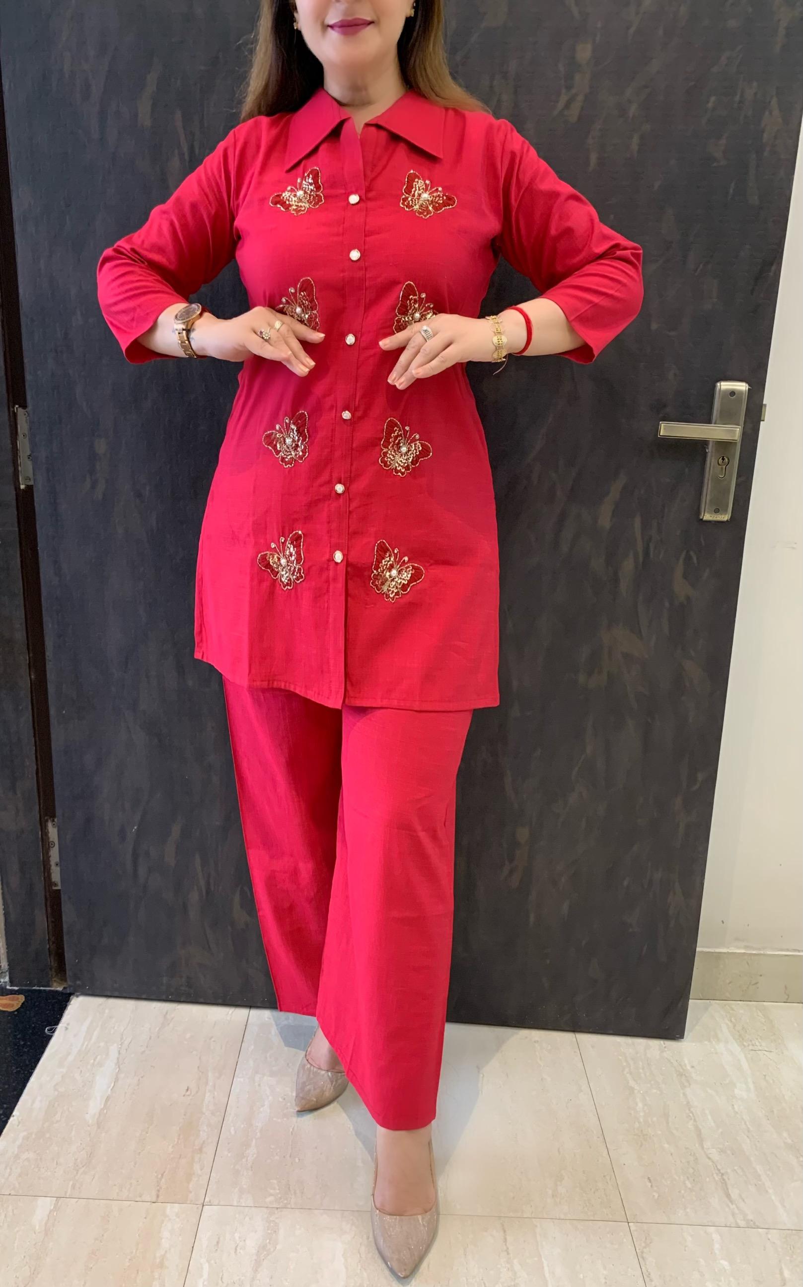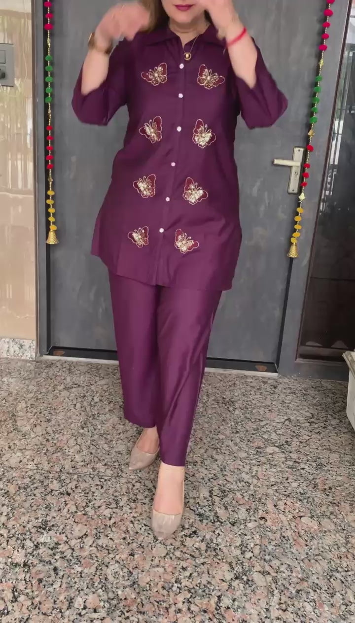 Elegant 2 piece Bombay Vatican Silk Co-ord Set with Lining Top and Fine Hand Work Motifs along with Plazzo Pant