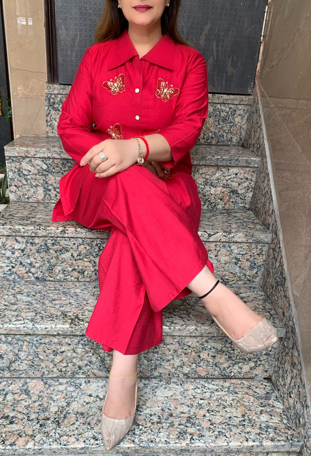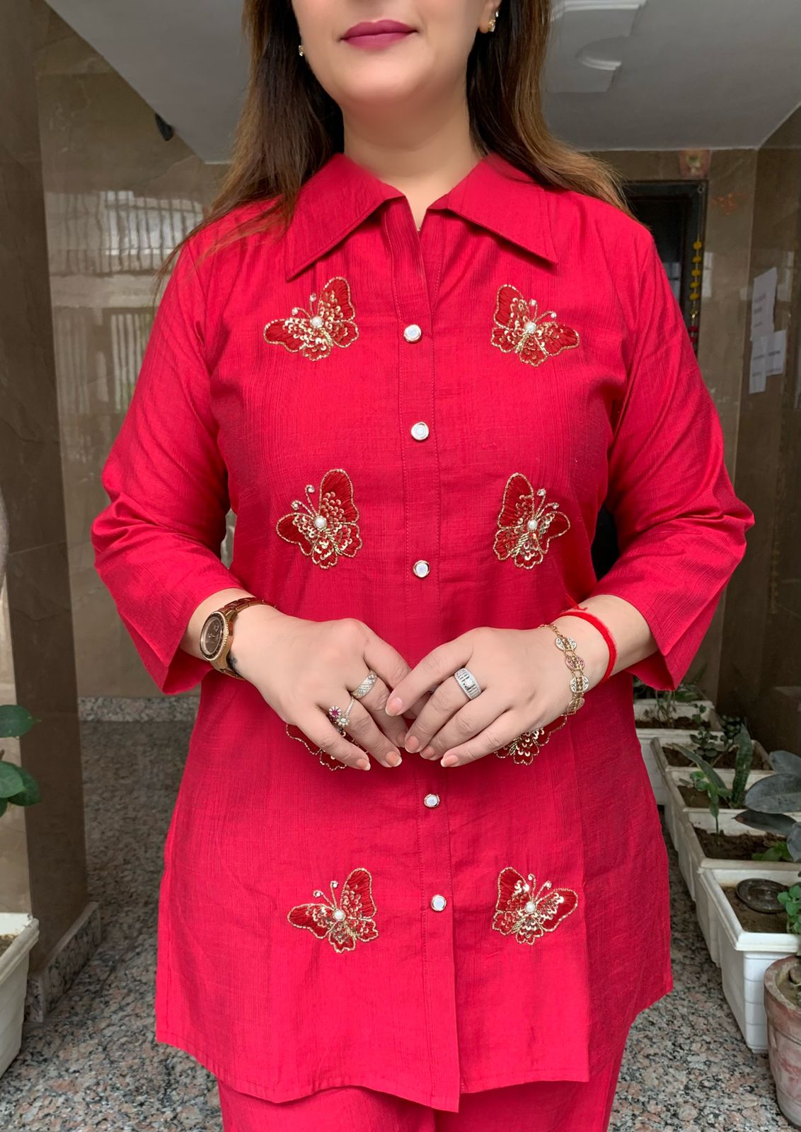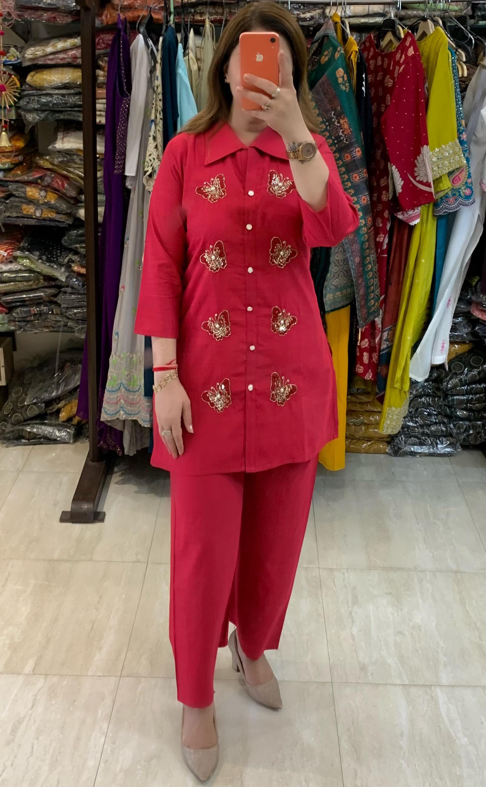 Elegant 2 piece Bombay Vatican Silk Co-ord Set with Lining Top and Fine Hand Work Motifs along with Plazzo Pant